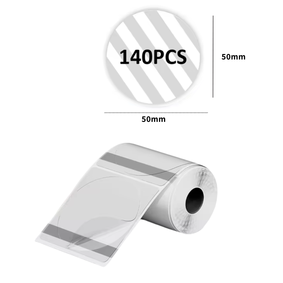 Imprima em etiquetas adesivas redondas usando a PeriPage A40. Use as etiquetas para imprimir nomes e textos curtos. Cole-os em copos, remédios, malas, computadores e muito mais! Adequado para impressoras portáteis PeriPage® com impressão térmica.